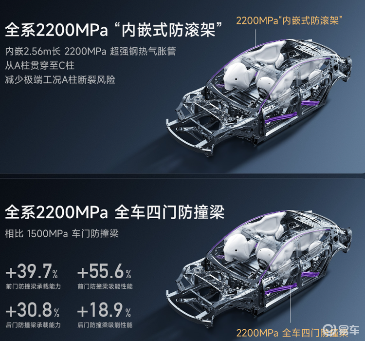 安全方面,新车全系接纳2200MPa内嵌式防滚架和四门防撞梁,全系9个安全气囊,进一步教悔主动安全。