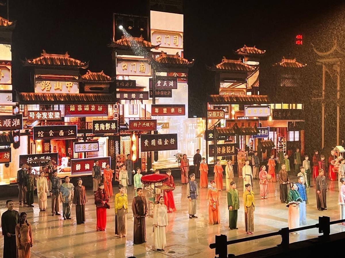 即便大雨如注,大型实景演艺《花开靖港》依旧按期上演。这场文化盛宴,以文夕大火为配景,再现了长沙的风土情面和家国情感。