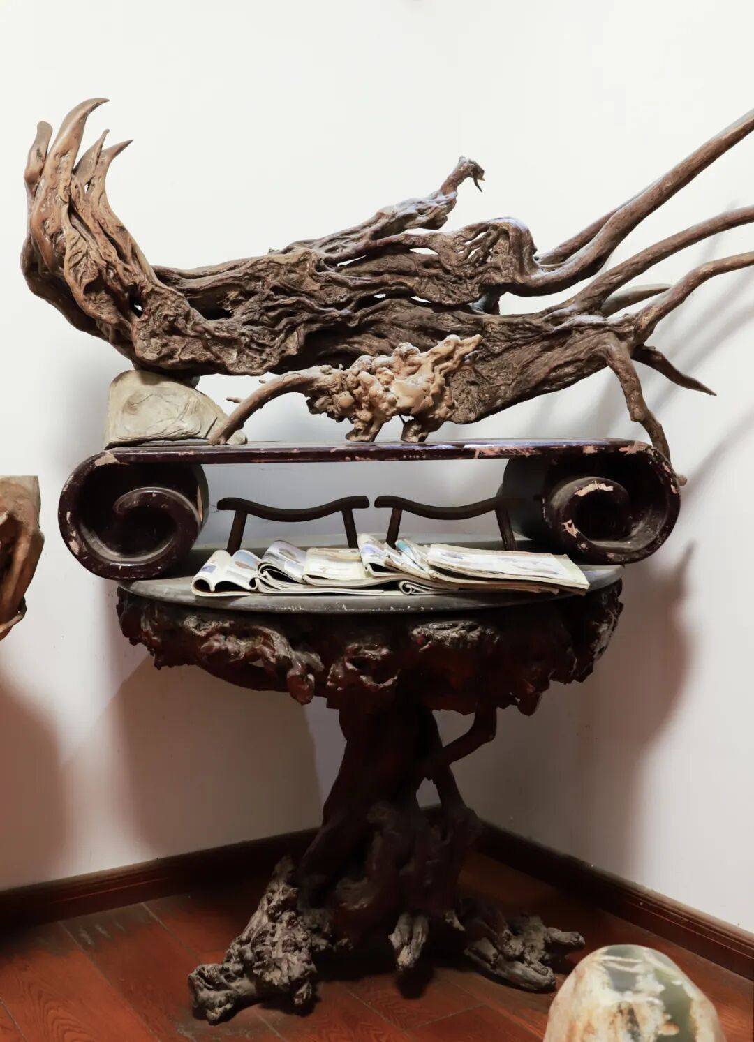 上世纪八九十年代,在武汉无线电工业学校(武汉职业本领大学前身)担任绿化搞定员和园艺师的姜淳厚,有时间与根艺结缘。为了寻找到一块中意的原材料,他常常孤身一东说念主钻进深山老林,一去就是一整天,旁东说念主眼中的艰苦,在他看来却是寻宝的乐趣。