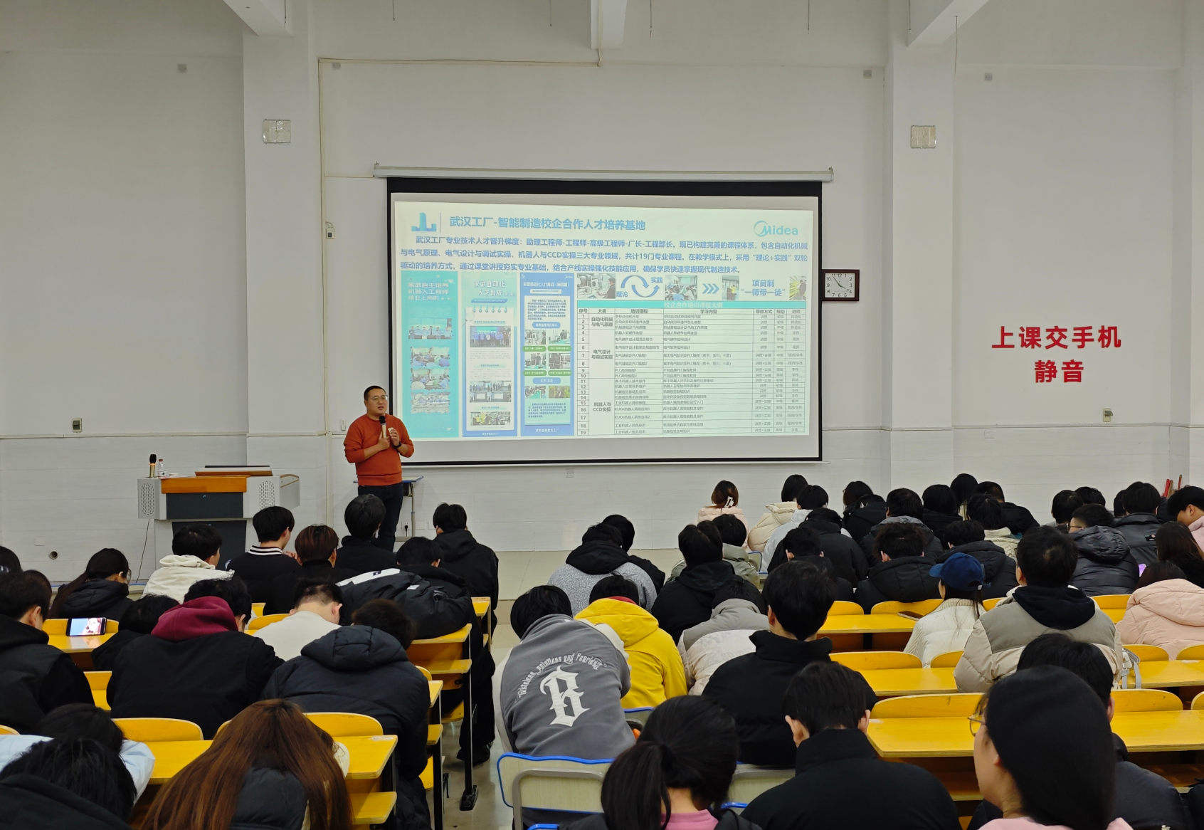 为搭建校企配合桥梁,全面提高东说念主才培养质地,拓宽学生处事渠说念,助力后生学子精确对接优质企业资源,2025年12月30日下昼,好意思的集团武汉公司东说念主事部部长罗锦在驻马店事业技艺学院北校区举行实习实训处事专场宣讲会。好意思的集团招聘团队、家用空调武汉工场代表,集成电路学院指导、交流员及关系专科学生参与会议。